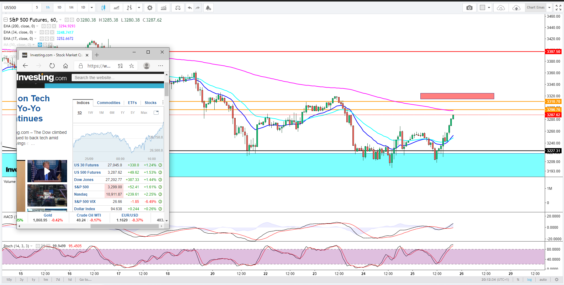 Na minha modesta análise técnica, o SP em velas horárias activou uma bandeira de baixa com o target nos 3 260
