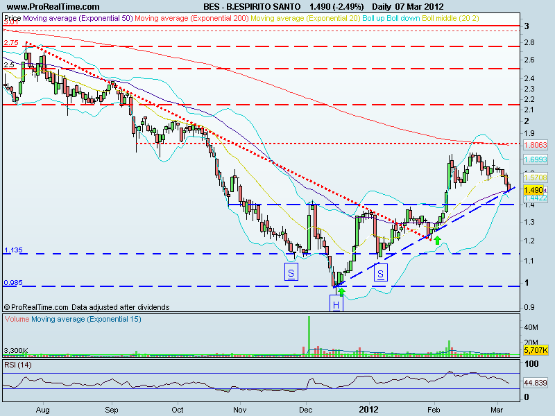 Deixo uma actualização ao BES, que continua numa fase de correcção técnica face às anteriores subidas.