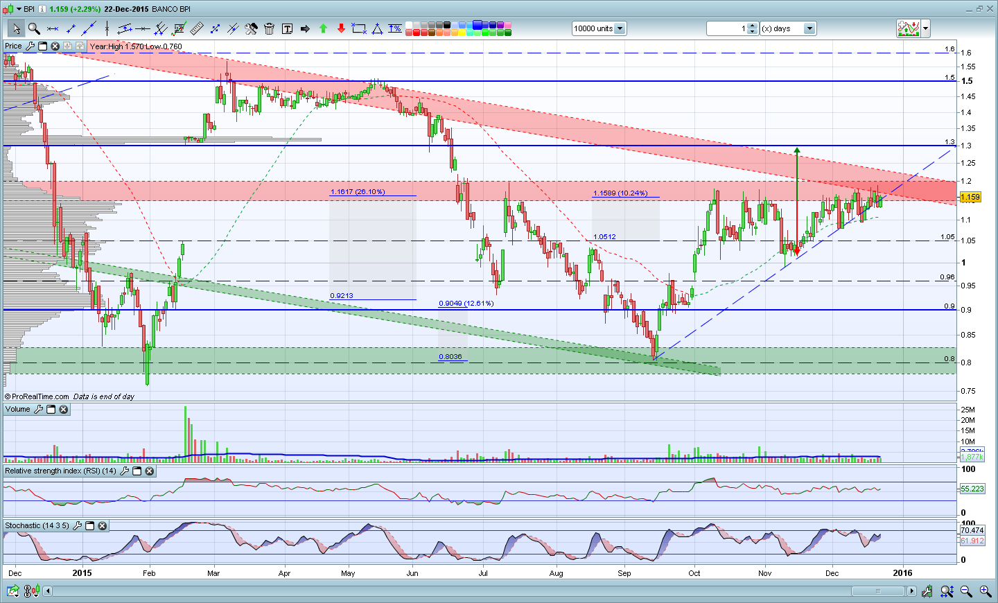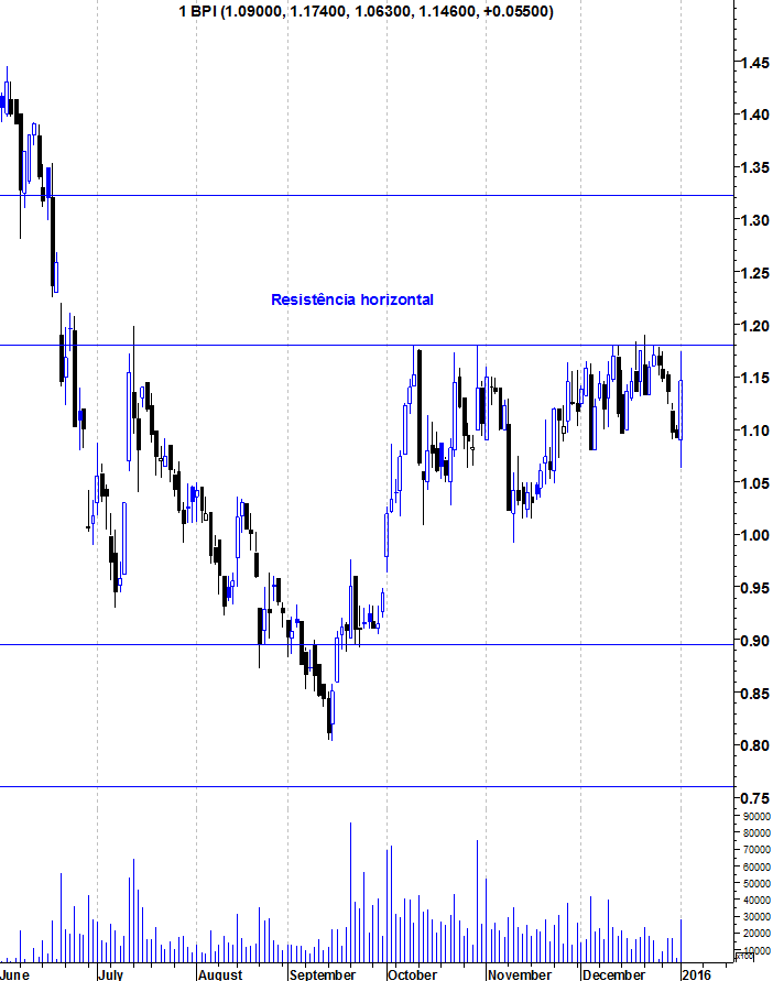 O BPI começa o ano em grande, mas voltou a fraquejar na resistência. Se quebrar consistentemente a resistência dos 1,18 euros, dará um excelente sinal de força em termos de curto e médio prazo. É essa a zona a vigiar.