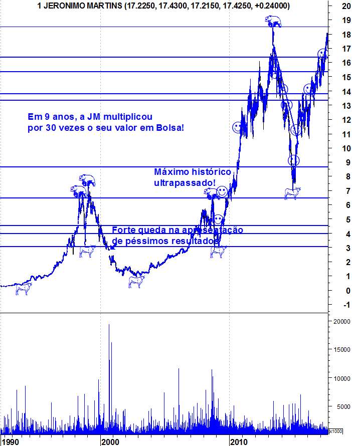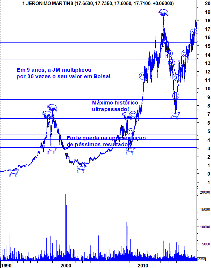 Aqui fica o gráfico actualizado dos 2 anos e meio de "Bull Market" da Jerónimo Martins.