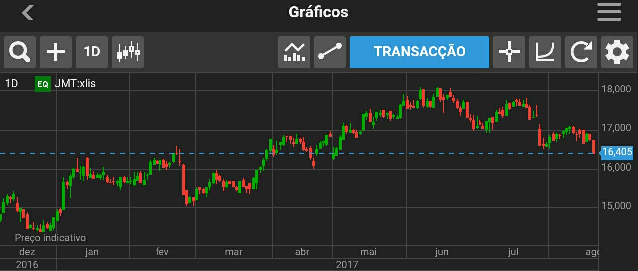 Considero as duas ultimas sessoes, principalmente a de ontem, exageradas em termos de dimensao da queda, em comparaçao com outras cotadas, e tendo em conta o proprio setor, com concorrentes de fora a superar estimativas. A propria sonae, tem um comportamento bem mais positivo, quando vai apresentar resultados na proxima semana, e estimam-se negativos. A instabilidade em varios aspetos é quem dita a direçao dos mercados, mas a JMT sempre se pautou por ser um porto seguro, e um papel de refugiu.