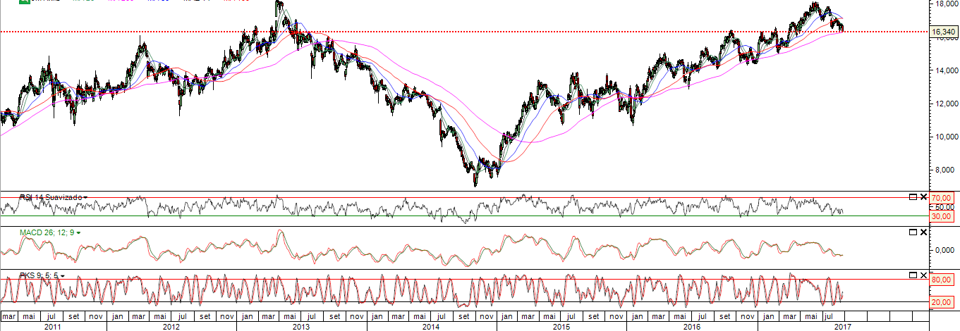 Fechou pouco acima do meio, a 16,44, dando um bom sinal de recuperaçao no curto prazo.
