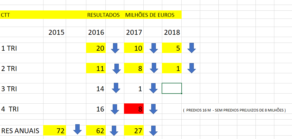 1. O gráfico dos CTT diz-me que a cotada está a cair desde os 10 euros e quem investiu no titulo a maioria está ainda com fortes desvalorizações .