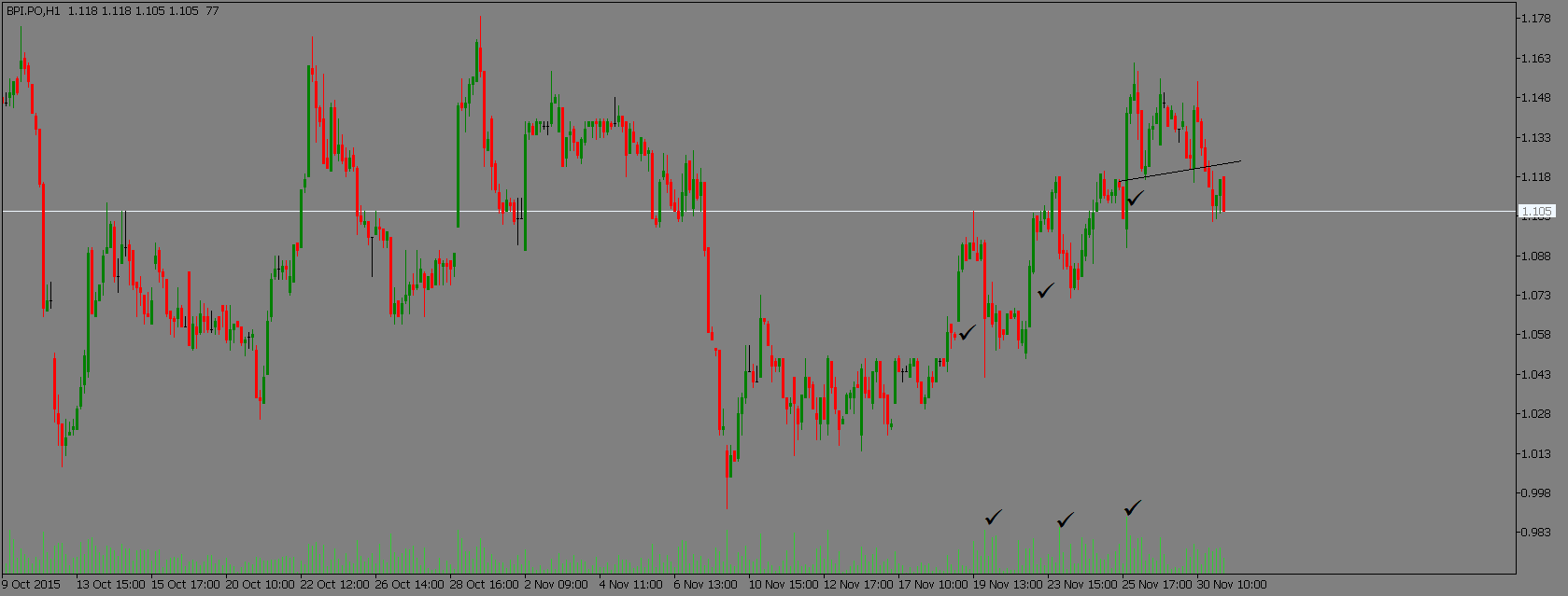 Também no gráfico horário surgem alguns sinais de força, com um claro apetite comprador a reflectir-se nos volumes. Um olhar atento permite perceber que os picos de volume estão associados a picos de preço, o que geralmente representa a composição de posições significativas. Mesmo tendo em consideração que a hesitação reflectida no final do gráfico poderá provocar uma perda temporária de momentum, apenas ficarei verdadeiramente preocupado se a marca do 1€ for quebrada em baixa.