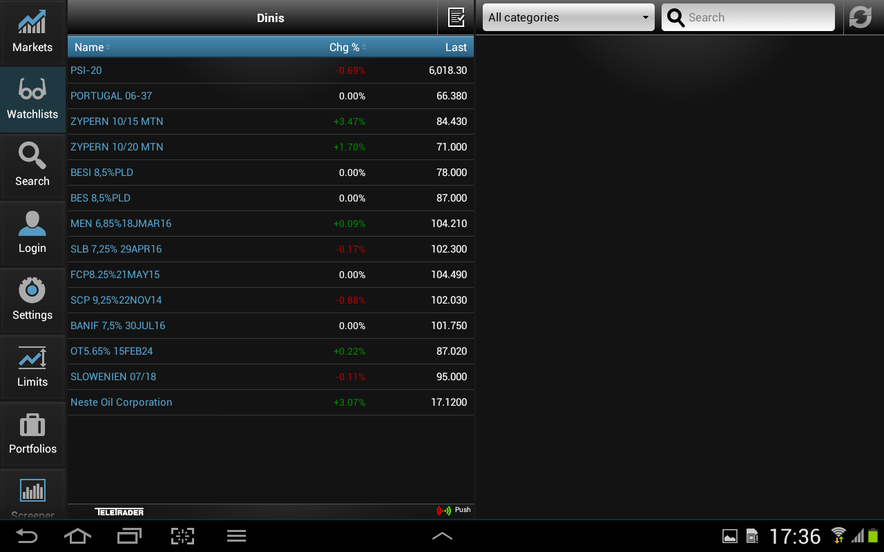 Consegues encontrar todas as obrigações no TeleTrader? Mesmo as tugas? Deve ser a única app que consegue isso.