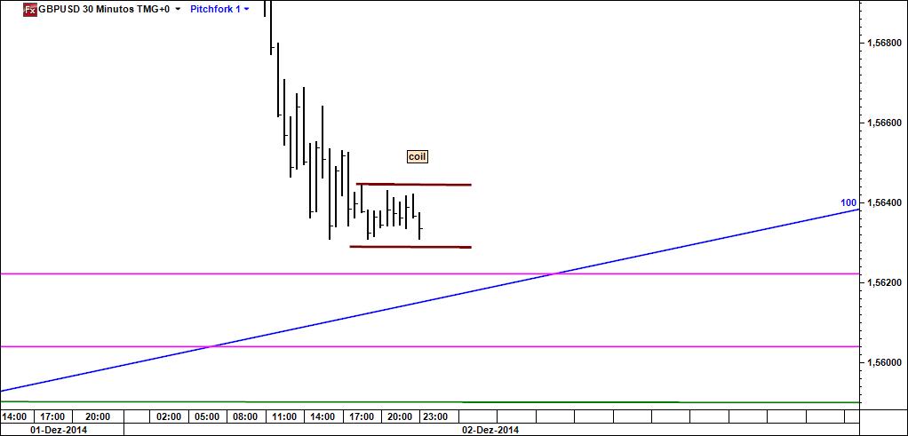 Regressando ao gbpusd: um "coil" a ser construído para ser violentado. Só ainda não se sabe em que sentido e se esse sentido perdurará.