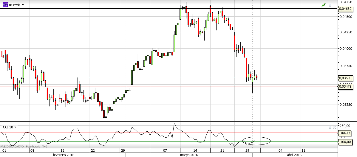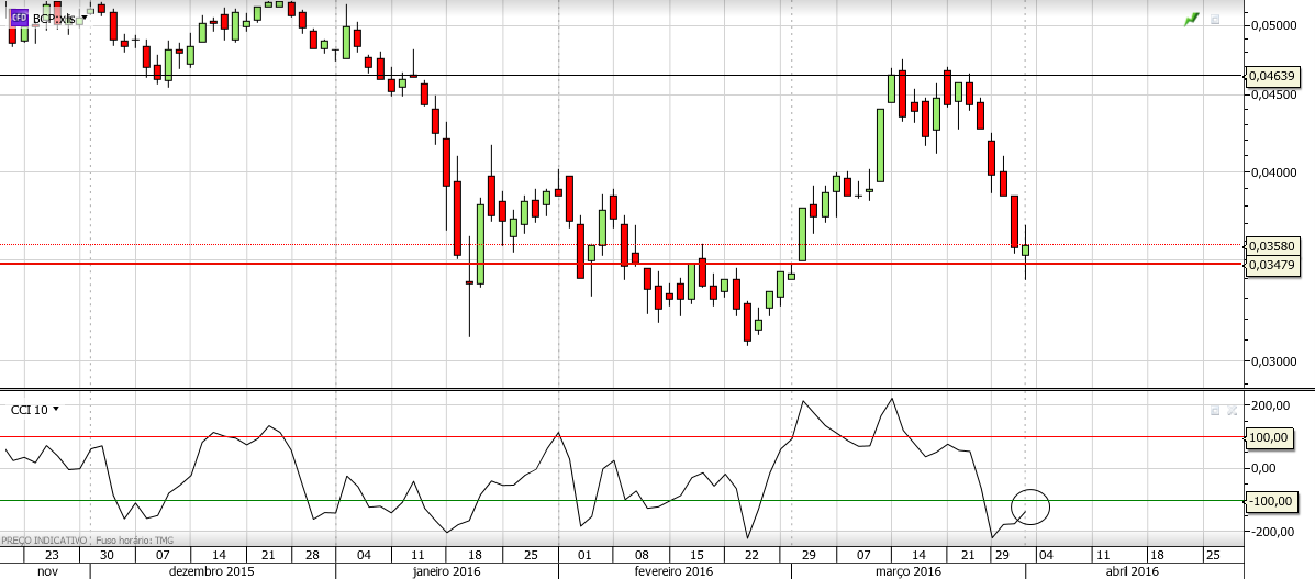 BCP em oversold e a vela de hoje pode significar um fundo na queda, sujeito a confirmação na segunda.
