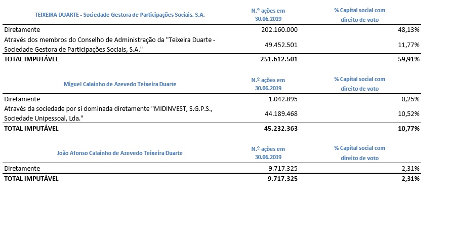 Sabendo que a Teixeira Duarte cotada tem 420 milhões de ações emitidas, tinha em sua posse 211.551M ações em Junho 2018