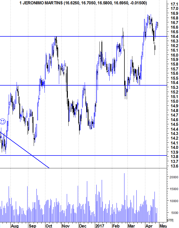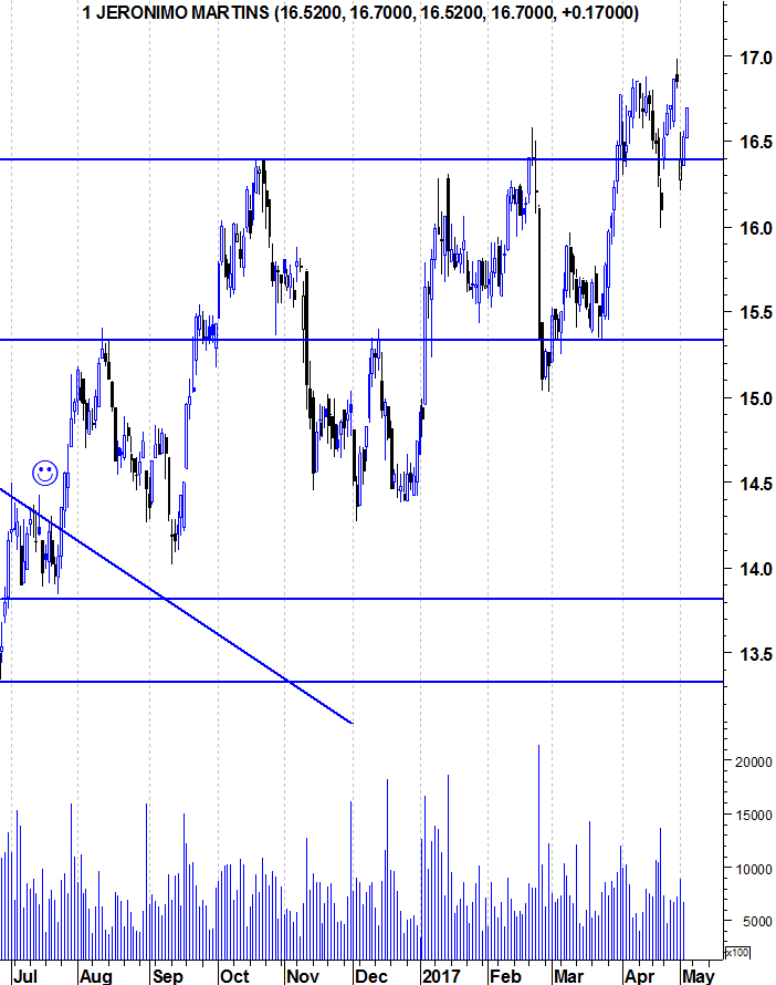O titulo está na zona de máximos históricos atingido em Maio de 2013 na zona dos 18,60 tendo isso recentemente lá perto.