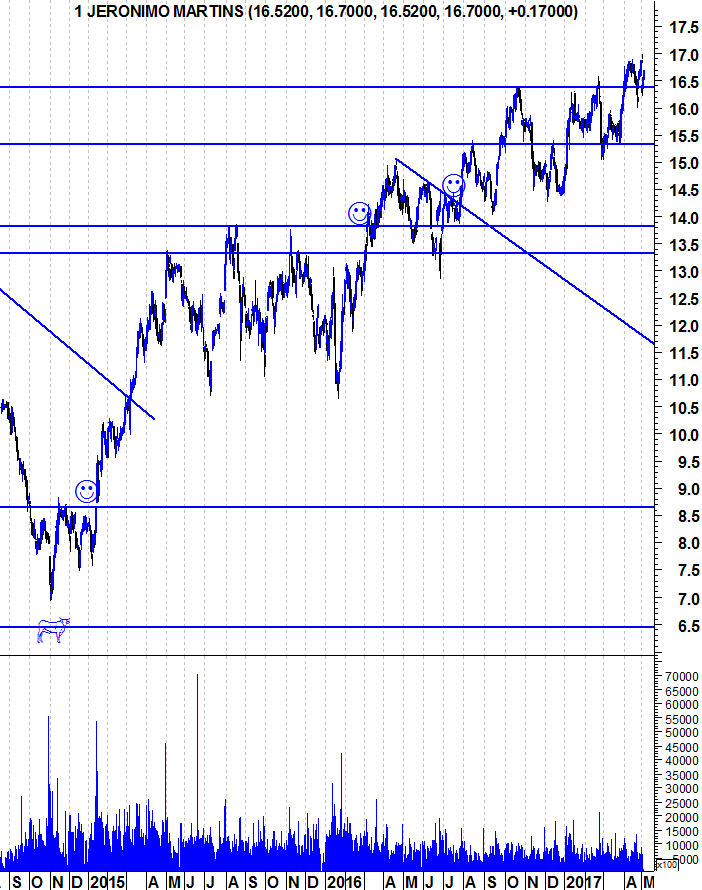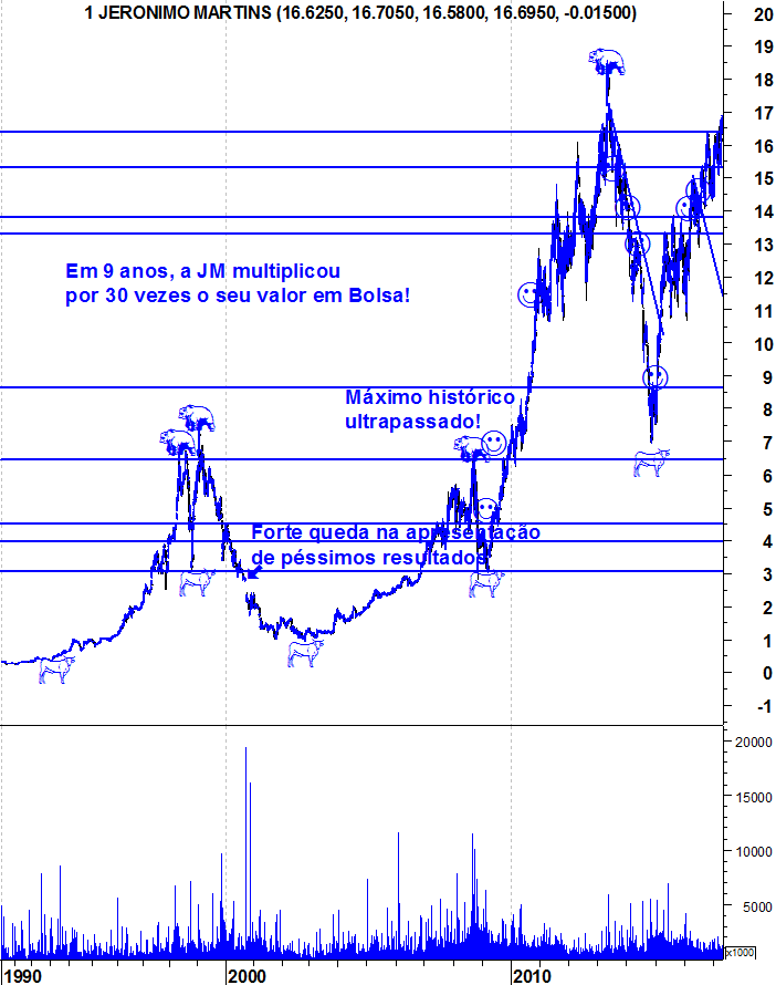 Aqui ficam os gráficos actualizados da JM. O retrato de um "Bull Market" que já leva 2 anos e meio e que já fez a acção duplicar o seu valor.