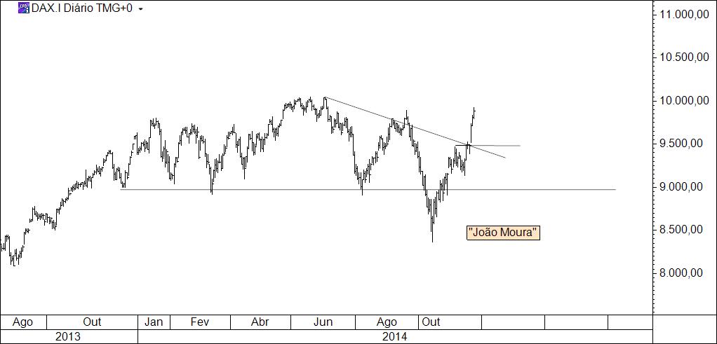 Era previsível que isso acontecesse? Tanto era que em devido tempo apresentei um gráfico do dax (o preço estava representado em linha) em que dava a entender o que se poderia passar.