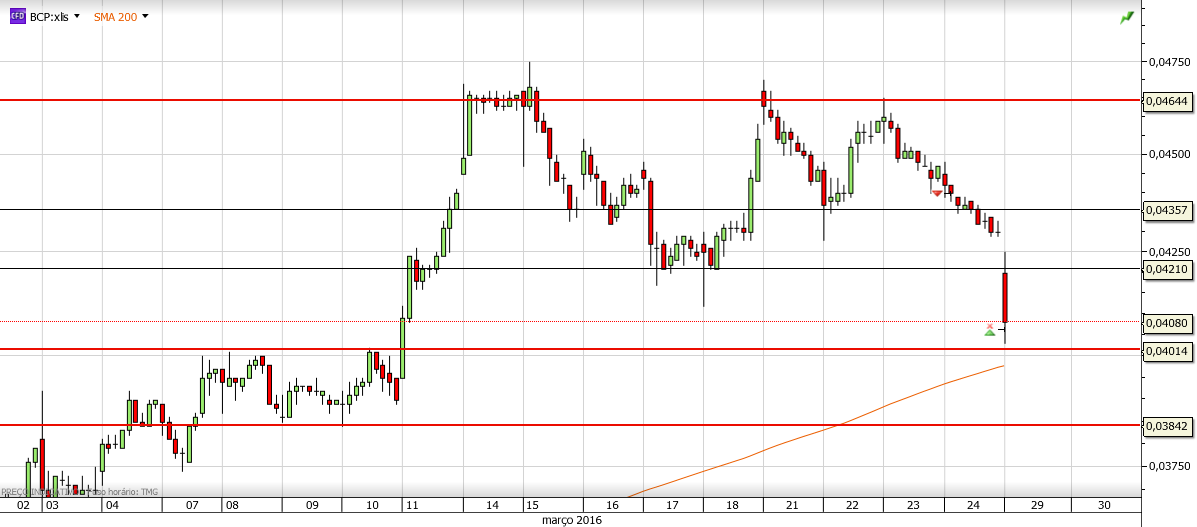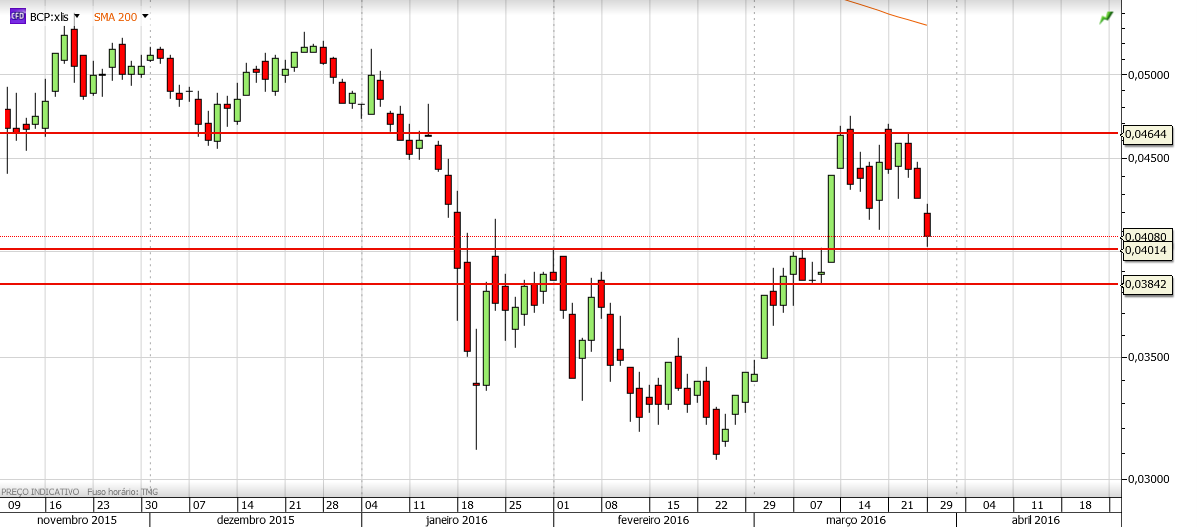 a AT diz que o BCP está quase a bater num suporte (anterior resistência), a quem está dentro vamos esperar que aguente. acredito que sim porque pelo pouco que percebo de AT pode mostrar um bom ponto de entrada para longos ou para fecho de curtos.