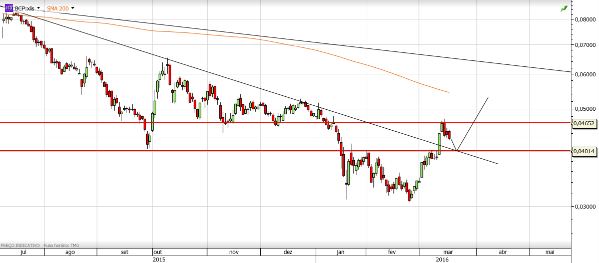 Como disse o Investbem, não temos que entrar em stress, enquanto não quebrar os 0.042, continuamos a ter o BCP minimamente controlado. Espero fechar a posição curta na casa dos 0.042 - 0.043, se o mercado assim o permitir.