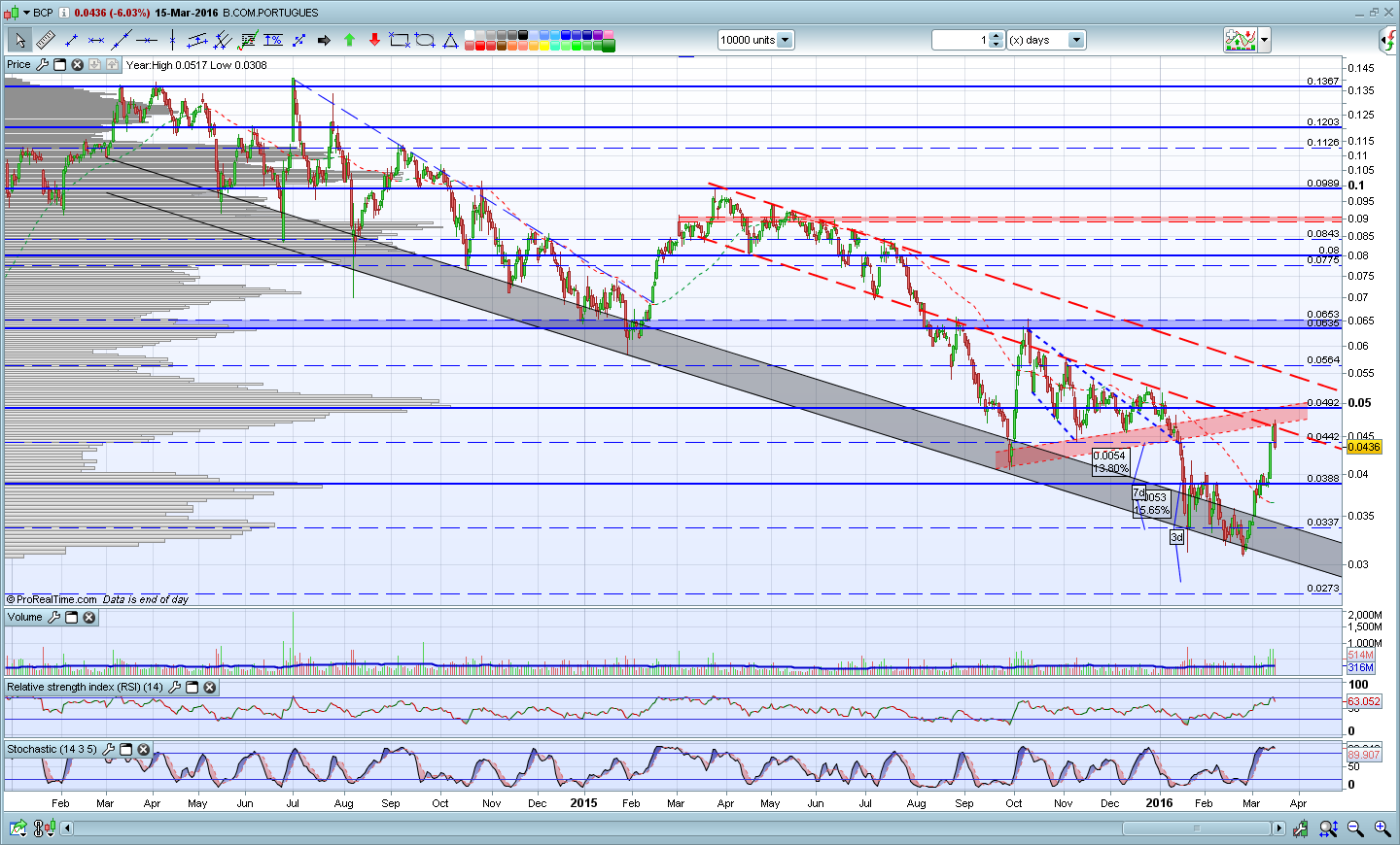 Fiz algumas entradas entre os 0.032 e os 0.039 e não vendi,pois acredito na evolução a médio prazo pelo menos até aos 0.067.Há quem vá amealhando e tentando apanhar as subidas e descidas,eu não o faço pois não faz parte de minha estratégia para este título!