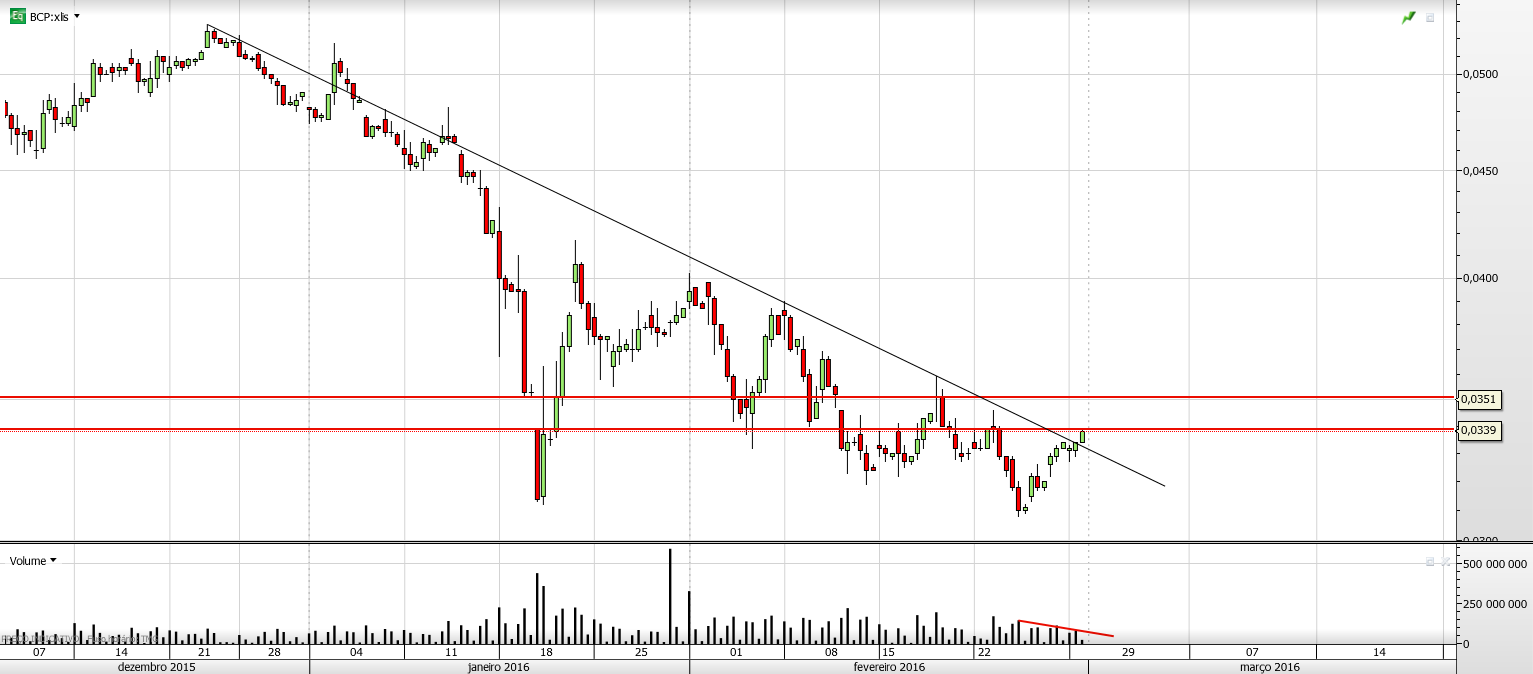 joao73 Escreveu:O BCP ENCONTRA-SE NUMA ANALISE AT DESCENDENTE EM TODOS OS PRAZOS, POR ISSO SÓ SE DEVE ENTRAR LONGO NUM FORTE SINAL DE REVERSÃO.