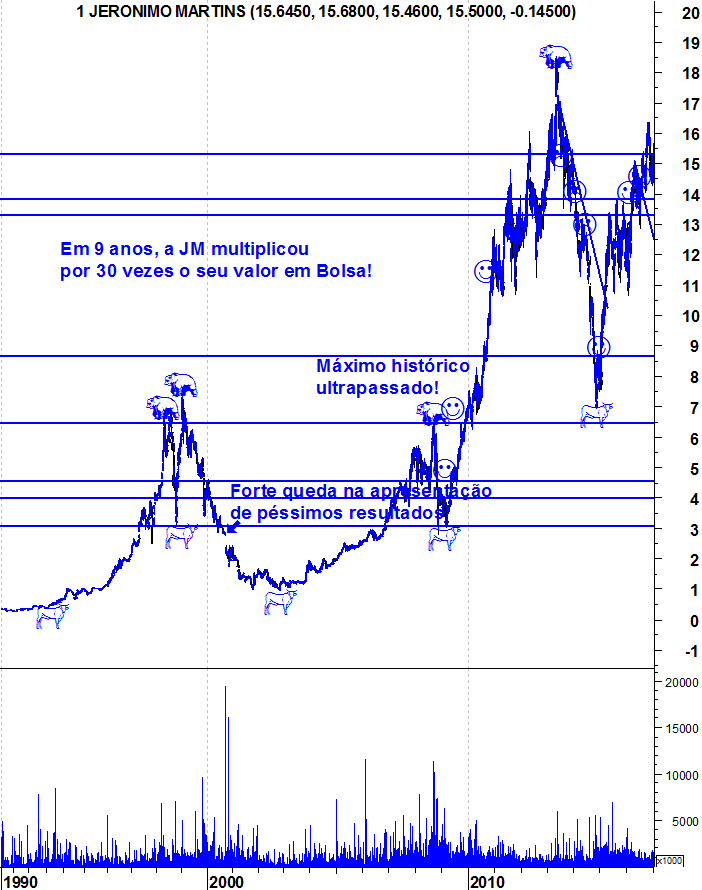Rango Escreveu:A JMartins está hoje imprópria para cardíacos... depois da abertura. teve uma queda de cerca de 2,5% que levou a cotação aos 15,23. Depois, foi recuperando e já esteve positiva cerca de 0,4%, nos 15,665 e, agora, está numa situação de equilíbrio, nos 15,60, que não se sabe se vai para baixo ou para cima.