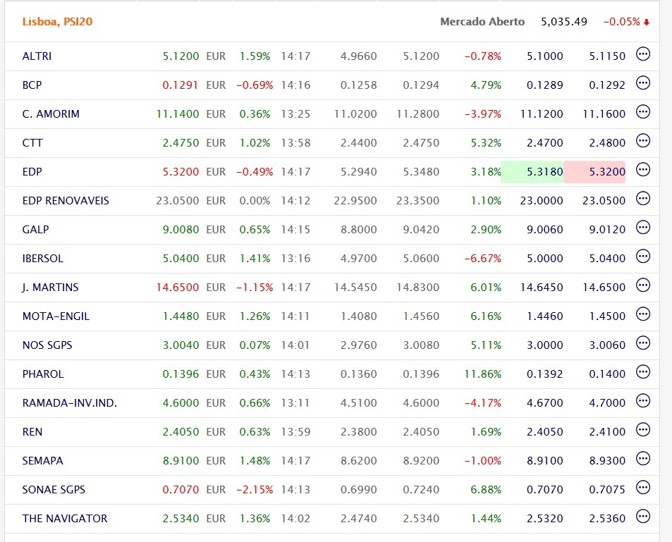 De facto como é que é possível que a EDP e + 3 títulos consigam manter o índice no vermelho ?? Dá para imaginar o peso da eléctrica...