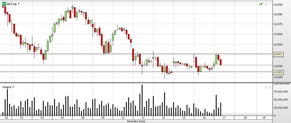 Num dia em que o BCP aparenta ter alguma força de subida ,esta já se encontra completamente "tapada" pelas ofertas de venda. Uma defesa feroz por parte dos "ursos" mas espero que a força ascendente se mantenha por alguns dias de forma a tentar forçar o fecho de alguns curtos e ceder esta cerrada defesa.