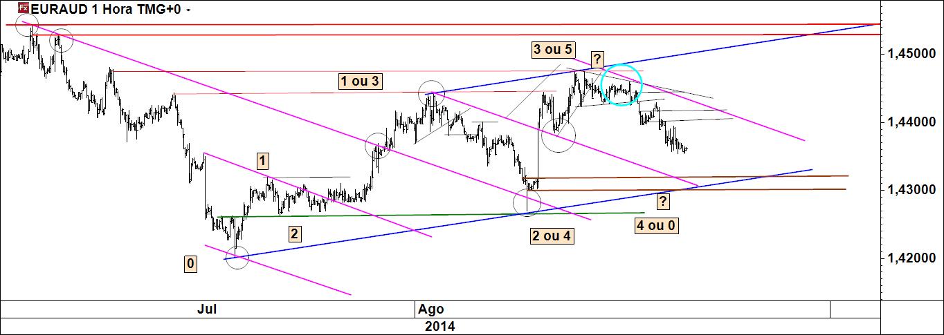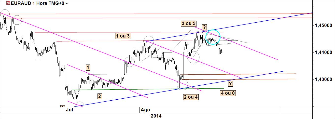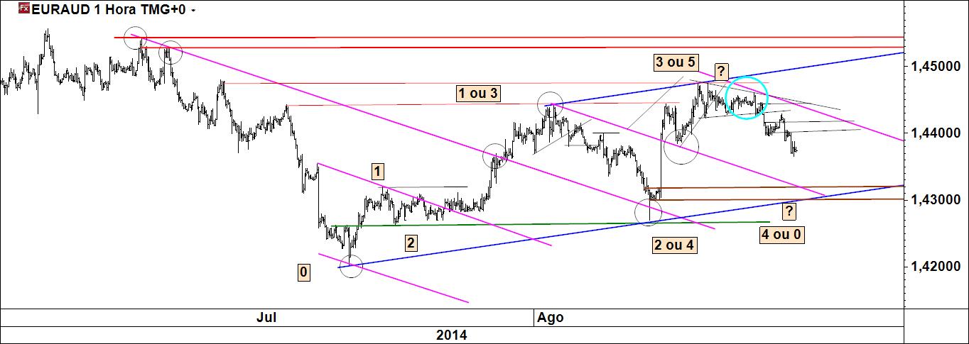euraud 1 h: metade do caminho percorrido até ao target origina retirada parcial de proveitos. No restante deixar rolar até o target final. Stoploss no mínimo em b/e.