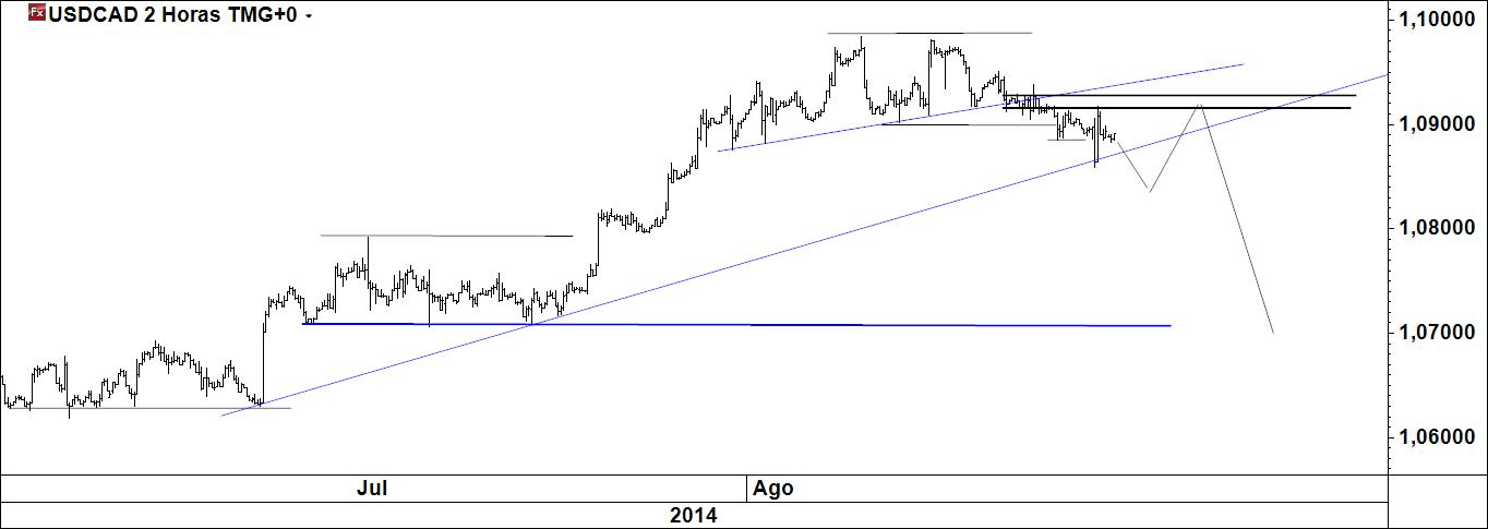 usdcad 2 h: caso o preço se comporte de forma aproximda à que se desenha, há forte possibilidade de comprarmos cad com target e stoploss já identificados.