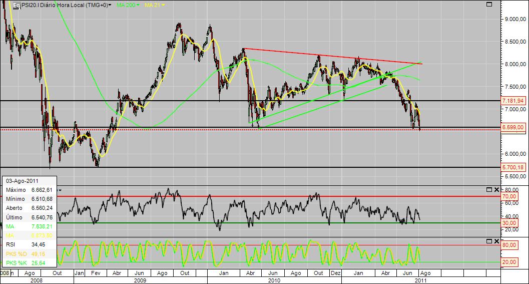 A atração fatal pelos 5700 funcionou. A reação para já está a ser positiva (longos). Poderemos ter aqui um grande suporte a ter em conta. Pela minha parte espero que sim. Se este não aguentar, temos de recuar a 2003 - pelos 5200 pontos.