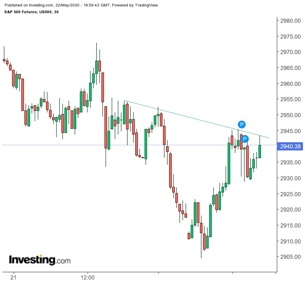 Ou já não percebo nada disto, ou claramente rompeu em alta aquele range. Bem sei que a liquidez é fraca (hoje foi feriado nos EUA), mas com tanto short entalado, isto poderá ter combustível para atingir o alvo (~3040). Vamos lá ver...