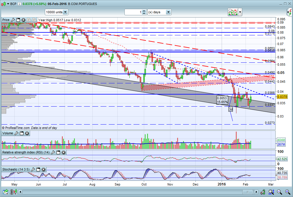 Edit: Eu já aqui referi que se o BCP conseguir vir consistentemente acima dos 4.10 cêntimos inverterá no curto prazo e dará um sinal positivo que me fará mudar a minha opinião sobre o BCP. Não é um sinal definitivo, nem sequer os há aqui, mas será um primeiro sinal importante de que algo poderá estar a mudar... é nesse contexto que surgiu a minha afirmação anterior!