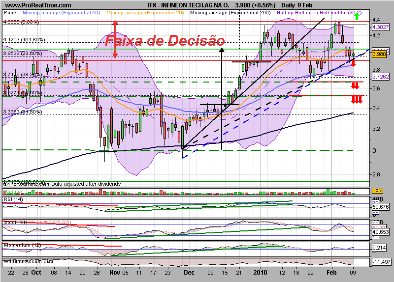 Vale ressaltar, pela negativa, o fraco volume apresentado nas últimas sessões de ganhos. Por este motivo, e apesar da Infineon estar bem posicionada para o disparo de um sinal de entrada potencialmente lucrativo, gostaria de aguardar mais 1 ou 2 sessões para acompanhar melhor a sua evolução.