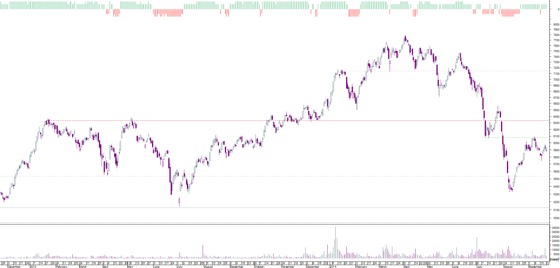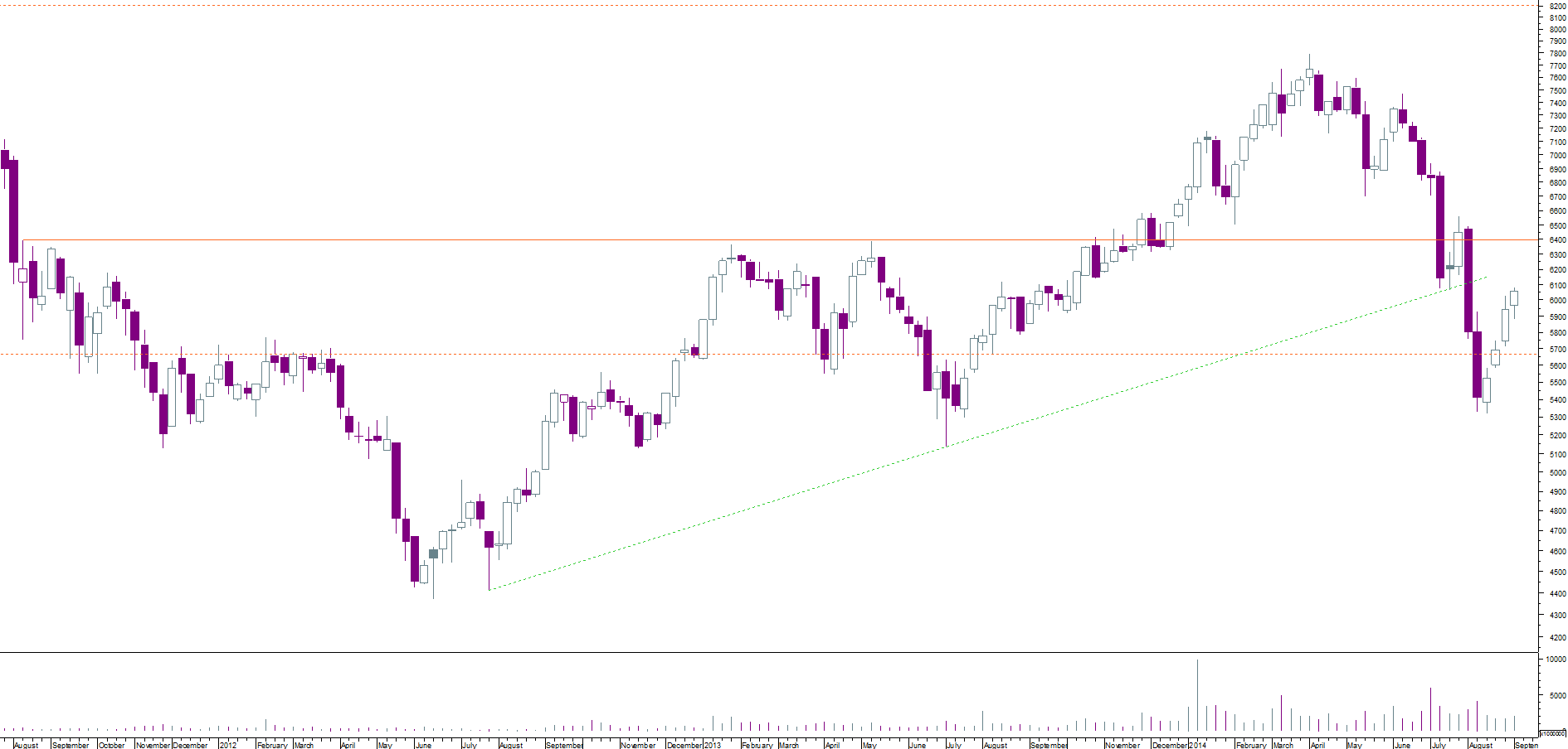 o actual objectivo dos touros é ultrapassar a zona dos 60XX, dando assim um primeiro sinal da sua força
