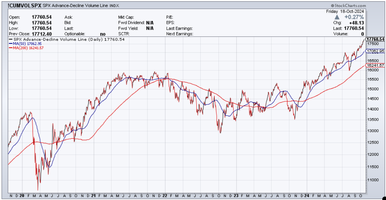 deixo abaixo a situação técnica do s&p 500 com o índice em bullish mode e os breadth indicators com leituras bastante positivas.