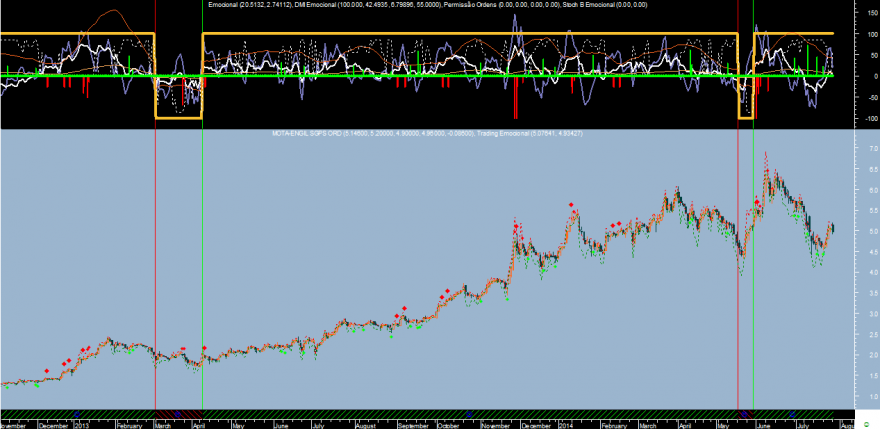 Como os que acompanham de vez em quando este tópico têm sido testemunhas, este sistema de trading do “Emocional 2014” é composto no fundo pelo somatório de 2 sub-sistemas: um tendencial e outro oscilatório.