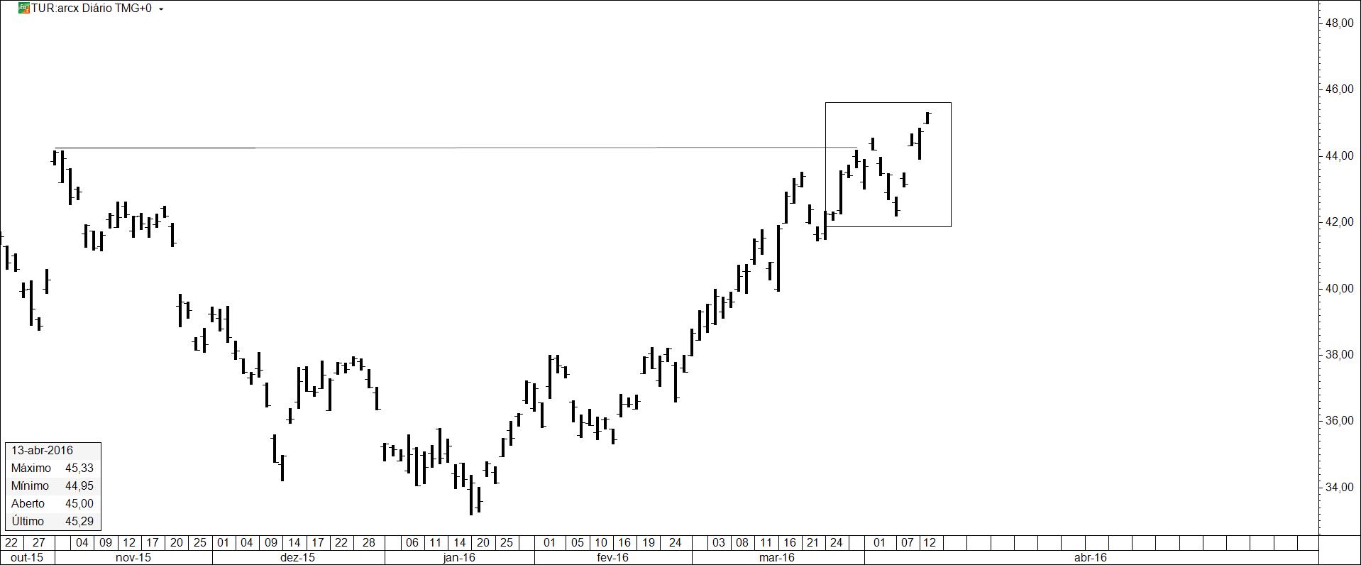 Espera-se um evento entre Março e Abril que poderá afectar (ainda mais) a cotação, Com o risco colapsado, aguardar-se-á o desenrolar dos acontecimentos. É claro que "o mercado" já sabe o teor do evento, daí colocar-se/já se ter colocado em posição de dele tirar o máximo proveito. Falta saber se com ele sobe ainda mais ou se dá um trambolhão.