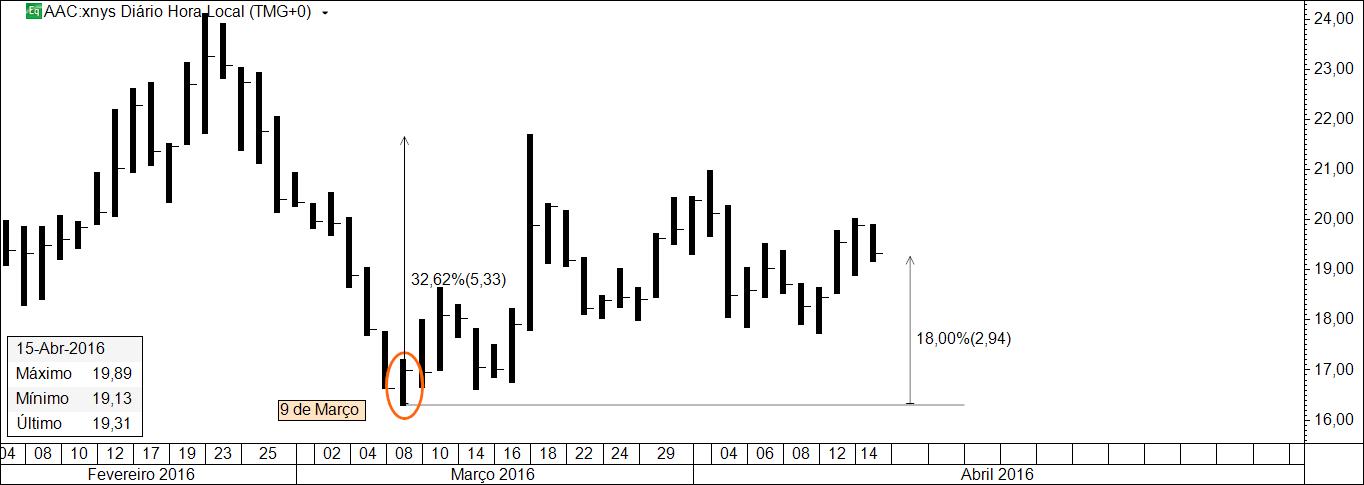 A variação da cotação desde que foi identificado o activo.