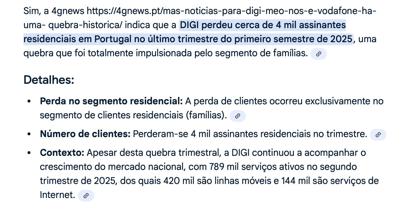 Expansão da rede: A operadora está a instalar a sua própria rede de fibra ótica e a expandir a cobertura móvel, o que contribui para atrair mais clientes.