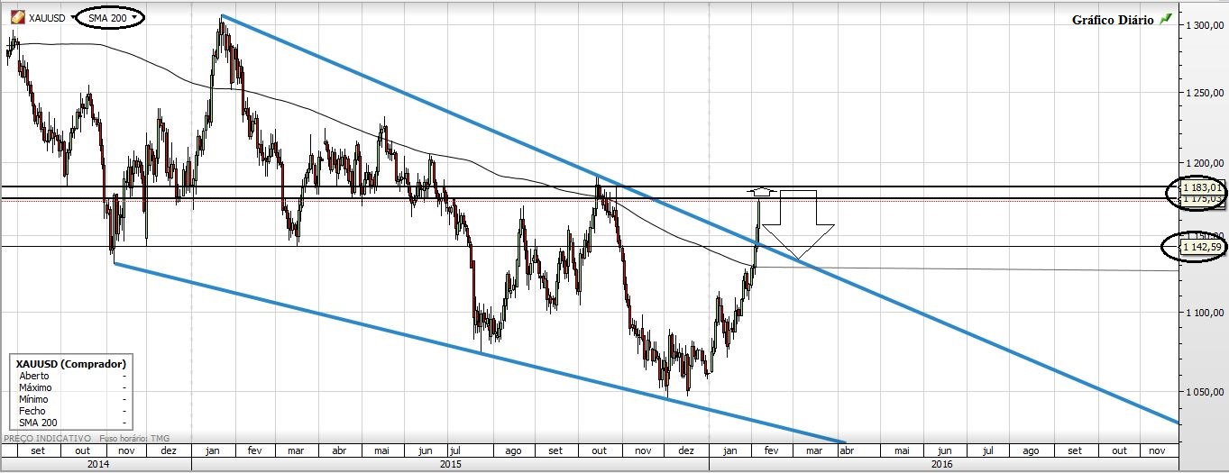 Uma nota para o Ouro, que anda no diário a ver se passa a M200, seria importante que a quebrasse em alta.