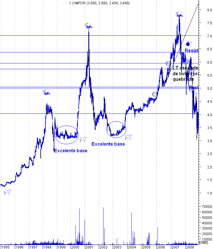 A Cimpor continua o seu "bear Market" que já leva 15 meses e que a fez perder mais de 50% do seu valor em Bolsa. A sua tendência de médio e longo prazo continua a ser claramente descendente e continua sem haver qual sinal de força dos touros que nos façamn colocar em causa o domínio dos ursos.