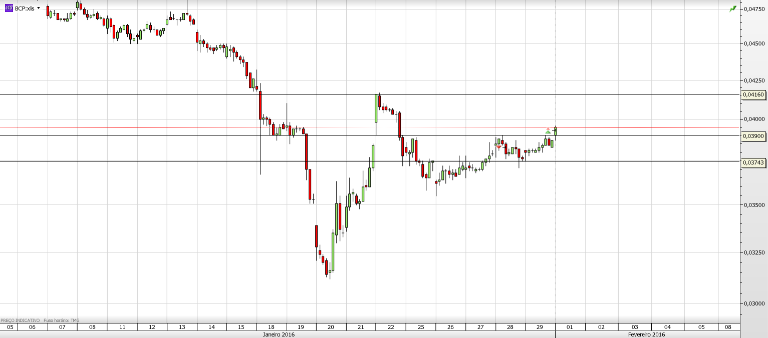 Ainda assim, em termos estritamente técnicos, que são aqueles a que verdadeiramente ligo, o BCP dará um primeiro sinal importante de inversão se conseguir quebrar em alta os 0,041€... se conseguir quebrar este valor em alta consistentemente fará algo que já há algum tempo não tem conseguido fazer... vamos esperar para ver! Convém notar que, mesmo que o consiga fazer, estará apenas a ganhar uma primeira batalha, mas muitas outras se seguirão para se dizer com alguma certeza que inverteu a tendência, mais ainda para se dizer que tem uma tendência consistente de alta...