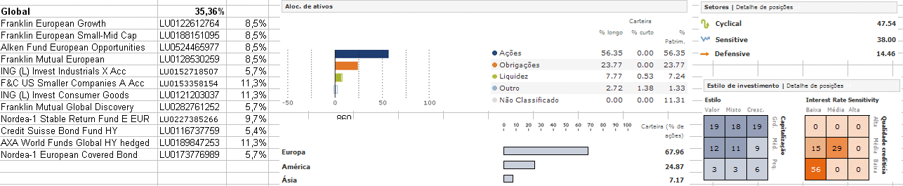 A 1ª é uma carteira global, de alocação mais estratégica, da qual pretendo obter uma valorização estável (6-8% ao ano) e duradoura. O objectivo é manter a carteira por um período de 3-5 anos sem fazer grandes alterações.