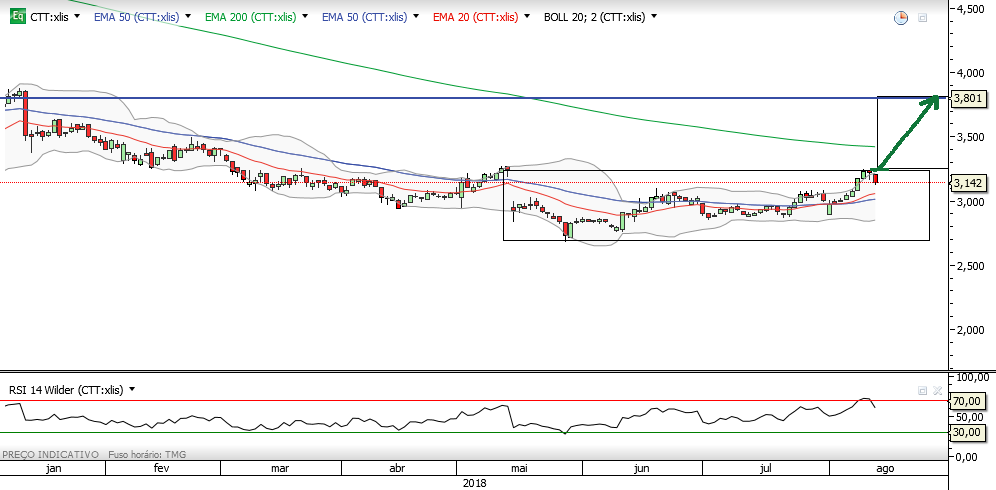Quando passar em fecho os 3.26 eu acredito em subidas para patamares superiores .