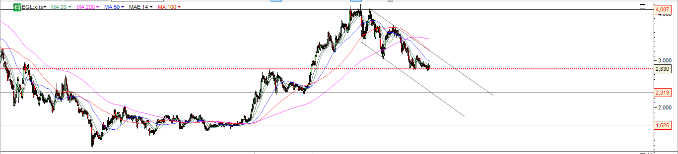 Esta cotada na recuperação até á resistência , não conseguiu ultrapassar a MM200 nem os fortes 3.26 e inicia recuo novamente para zona de suporte nos 3 euros