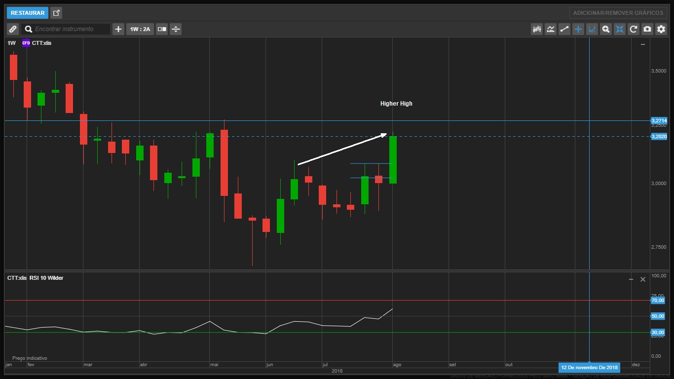 Há uma porrada de tempo que não fazia higher low seguido de higher high (meu).