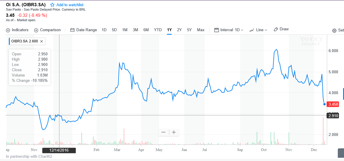 Basta olhar para o gráfico da OI, está em queda livre.