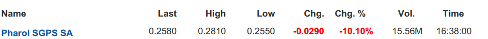 A PHAROL ao preço de hoje vale 230 MILHÕES de EUROS a preços de mercado.