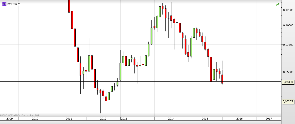 O único trade longo que fiz no Bcp foi no dia 26/11/2015 e tive uma perda de 2.87%, fui stopado um pouco acima dos 0.052, penso que todos os outros foram curtos e com resultados positivos