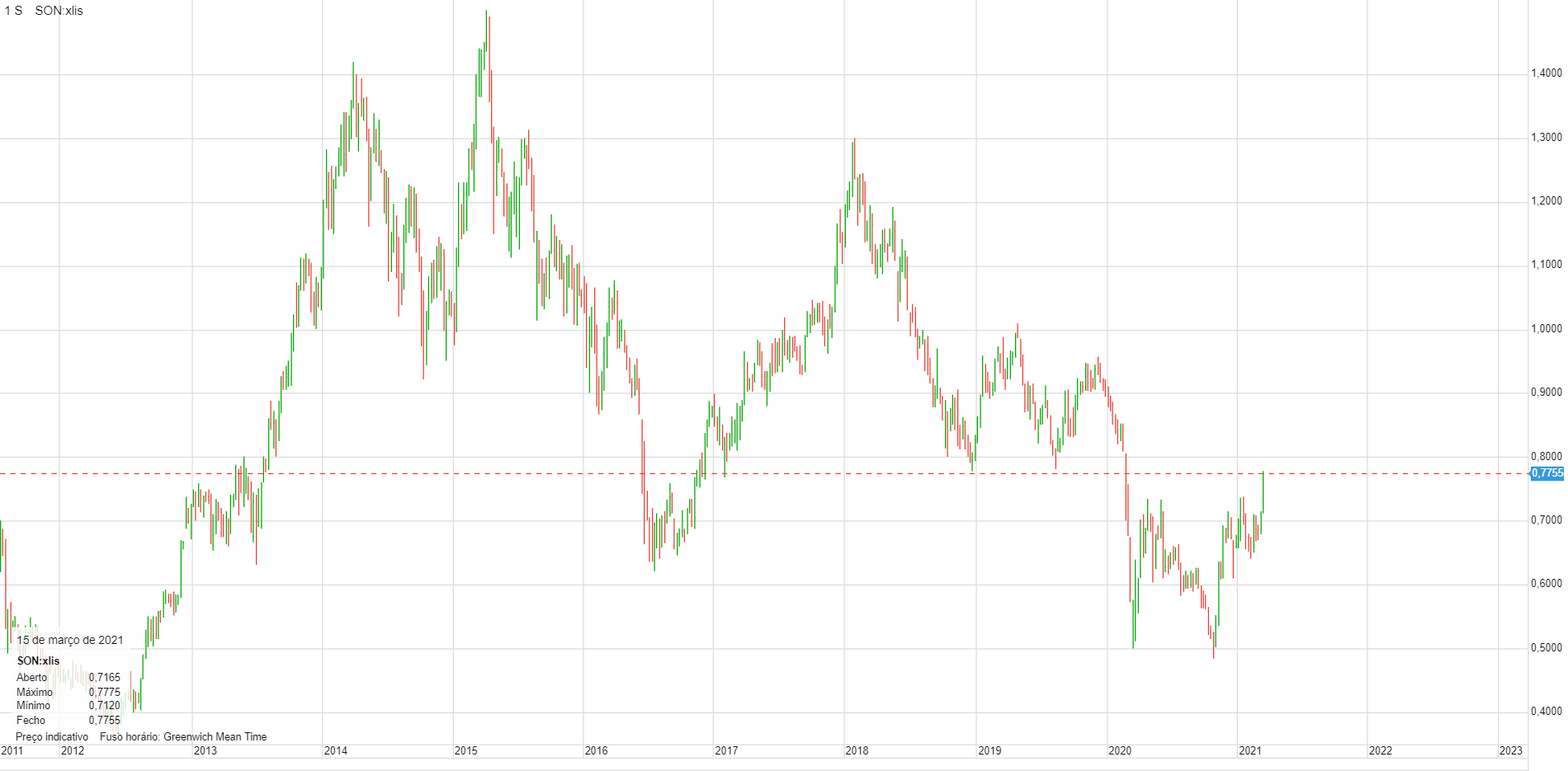 0.7755 Estamos em máximos de 1 ano!