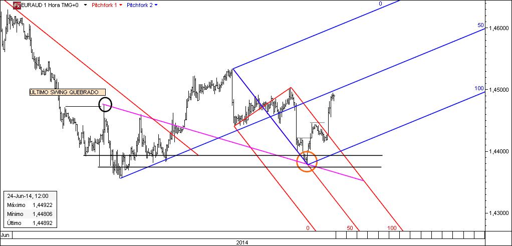 Voltemos ao nosso euraud 1 h, que tão bons exemplos nos tem proporcionado.