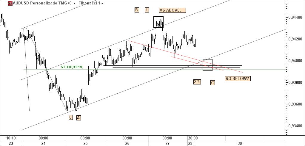 - no audusd 20 m: uso da inside median line, contagem dos pivots e recurso ao princípio as above so below para encontrar uma área de interesse, que se poderá apresentar como o pivot c do fork a construir;