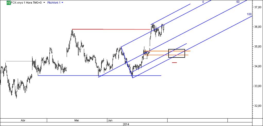 - no fcx 60 m: tendência ascendente, recente quebra de um anterior máximo, aproveitamento de um eventual retrocesso ao poi, com stop abaixo do swing low/banhada e targets múltiplos (median line superior, dobro do range, etc.).