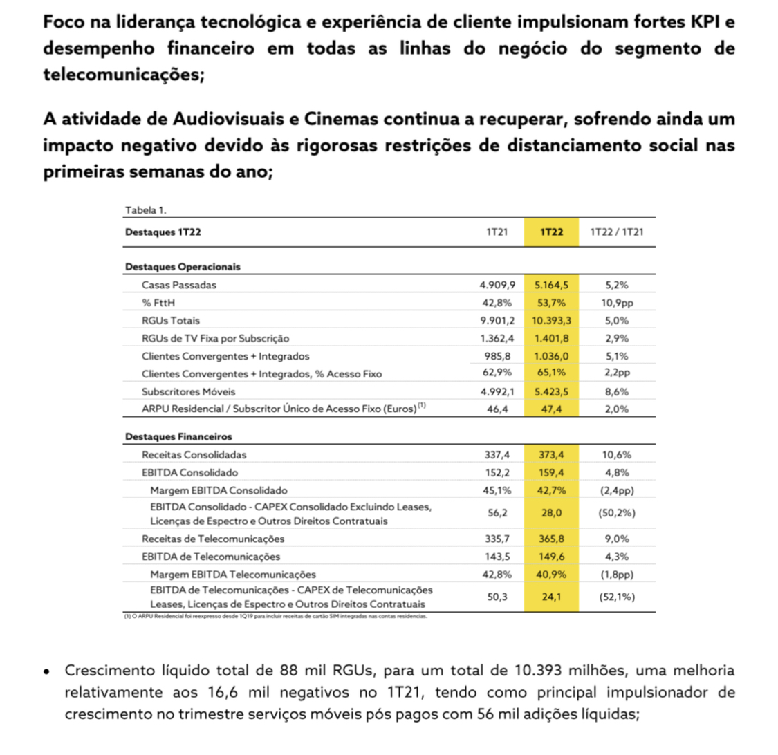 se os RGUs e a facturação crescem parecem bons resultados, embora isto também depende da forma como se diz umas coisas e omite outras - no último relatorio da ANACOM (1T 2022) referia-se que a NOS apenas tinha crescido no segmento móvil enquanto nos outros segmentos (fixo, tv, pacotes) tinha descido.