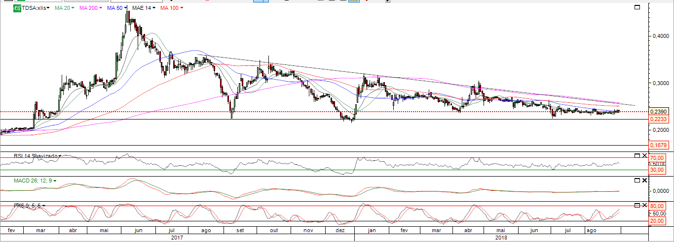 A TDU continua a evoluir numa tendência descendente bem delimitada pela LTD e por uma linha de suporte.